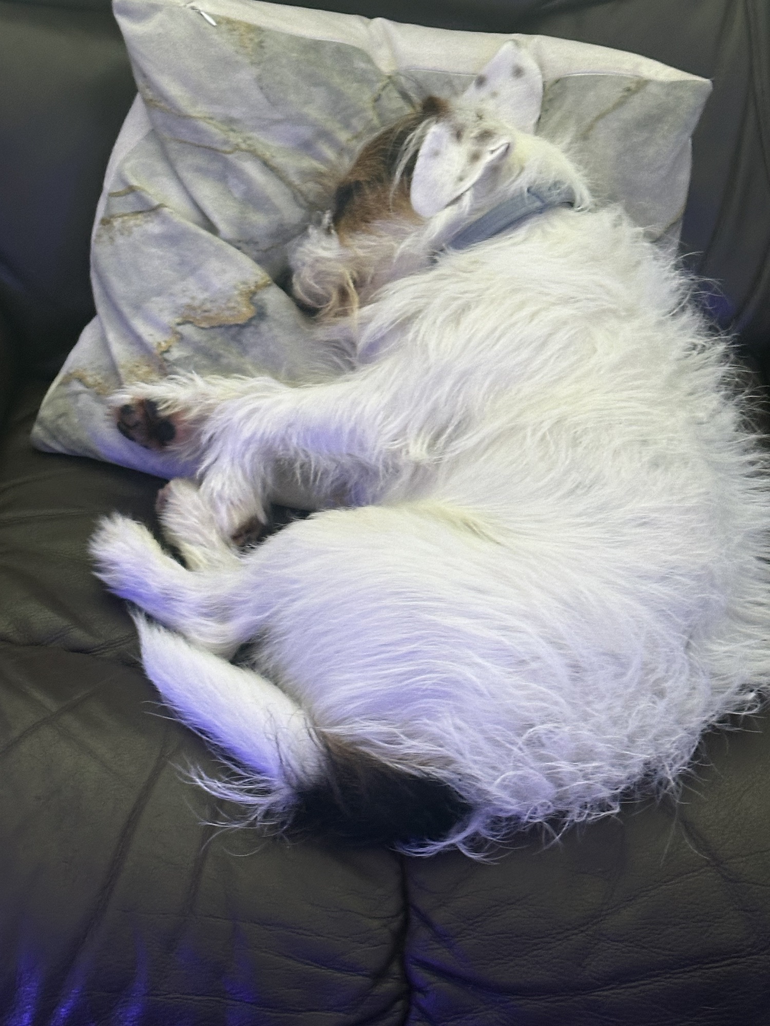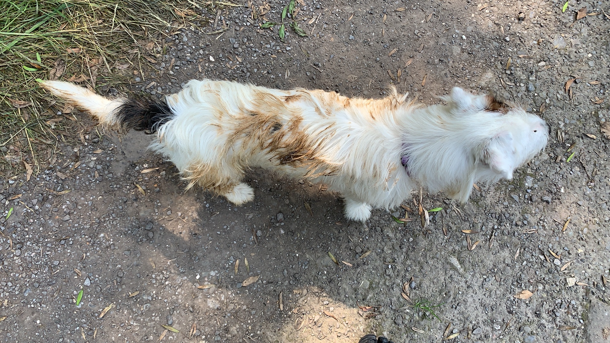 The above photo is Watson strutting the cat (dog) walk, sporting the deer rutting compound.