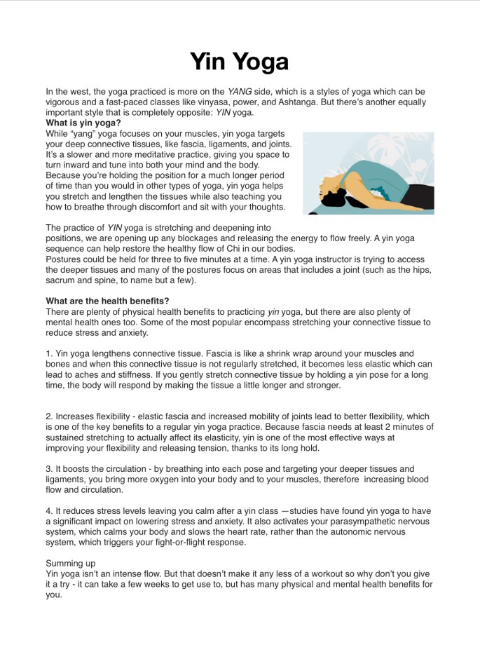 Yin Yoga Share this: Click to share on X (Opens in new window) X Click to share on Facebook (Opens in new window) Facebook Like Loading...